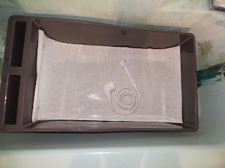 In September, after a long hot summer, Mom finally had some time off from work, Chris was home, it was a Blue moon weekend, so Mom said it was time to give me a bath!!  Chris said he would help, and I had no vote in the manner.  Not fair.   They even went out and bought me a bath tub to put in the bath tub and a sprayer.
